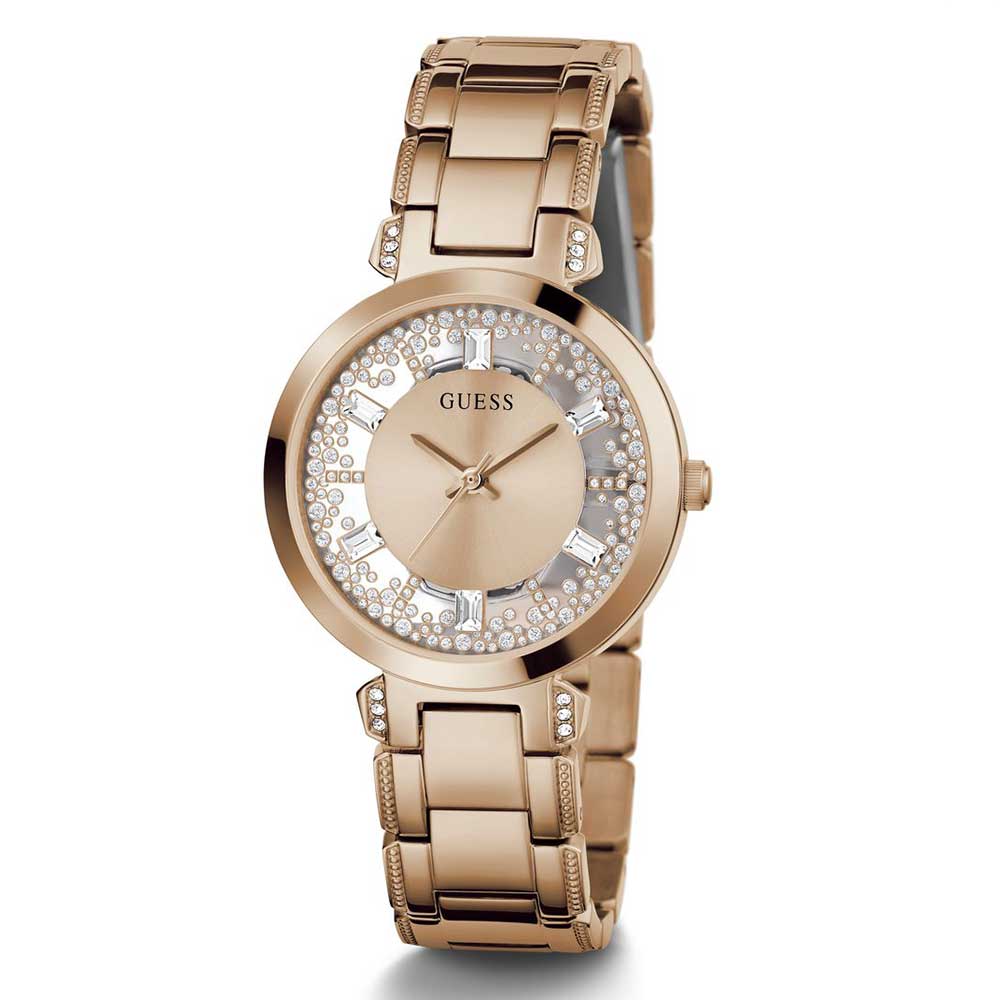 GUESS Crystal Clear Rose Gold Dial Stainless Steel Analog Women Watch GW0470L3