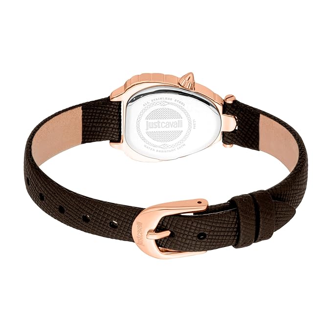 Combining functionality with contemporary design, this women's analog watch from the Perla collection by Just Cavalli is a perfect accessory to elevate your fashion game. The brown synthetic leather strap adds a warm, earthy touch that enhances the overall look of the timepiece. Encased in a sleek 29 mm case, the silver asymmetrical dial is protected by durable mineral glass and features a minimalist three-hand display. Completed with a buckle clasp, this watch ensures a secure and comfortable fit on your wrist, making it a stylish and reliable choice for everyday wear.