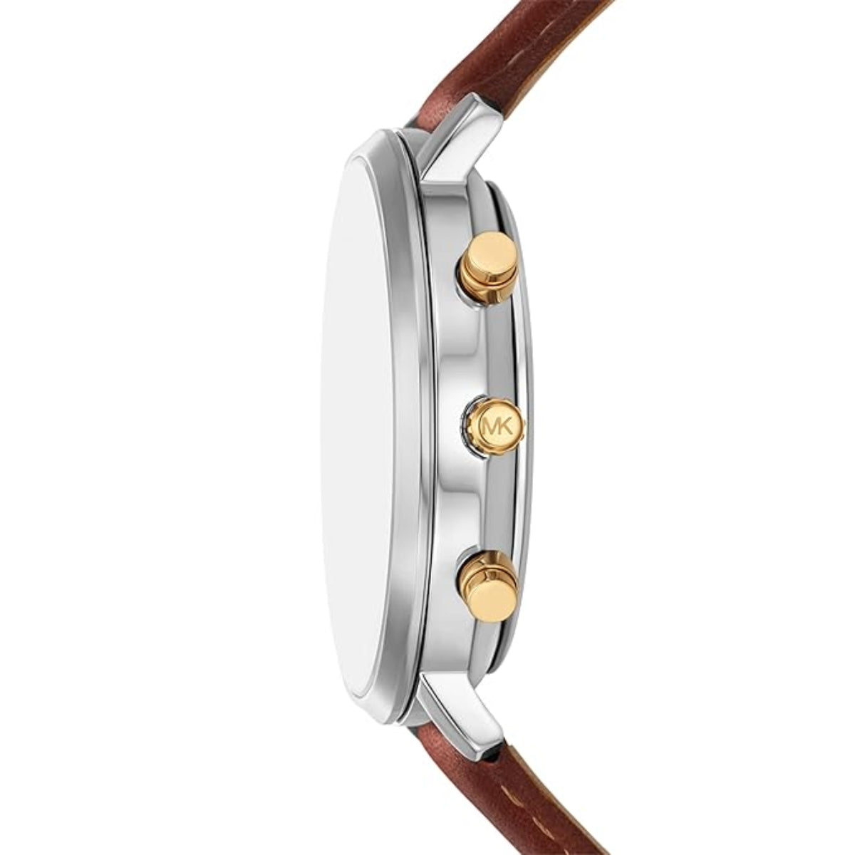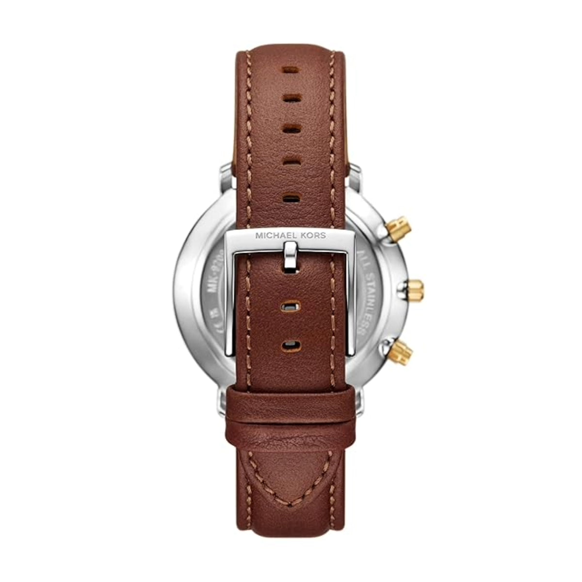 The Michael Kors Blake watch combines understated elegance with enduring craftsmanship. Featuring a 42mm case, a luxurious luggage leather strap, and a deep navy dial, this watch embodies classic sophistication. Its two-tone stainless steel case, precise quartz movement, and durable mineral glass make it both stylish and reliable—a perfect example of how simplicity can make a bold statement.