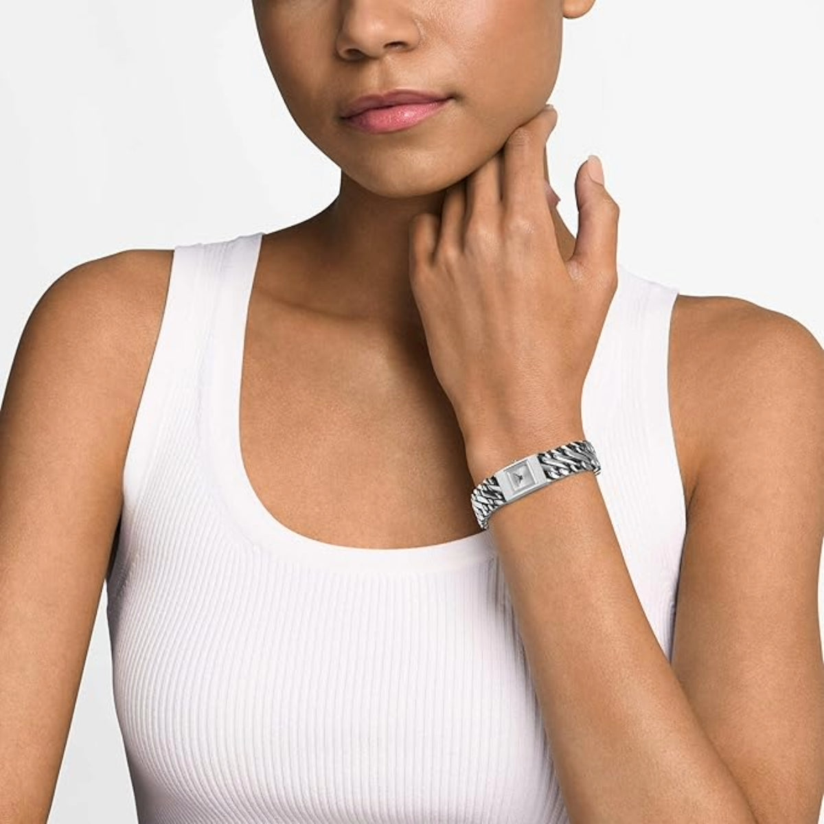 Elevate your wristwear with the Darrington watch, a sleek fusion of modern style and classic charm. Its polished silver-tone case pairs seamlessly with a matching double curb chain bracelet, creating a bold yet elegant statement. Designed for versatility, this piece adds a sophisticated edge to any bracelet stack and transitions effortlessly from day to night. Whether you're dressing up for an occasion or adding polish to your daily look, this timepiece is your go-to for timeless refinement.