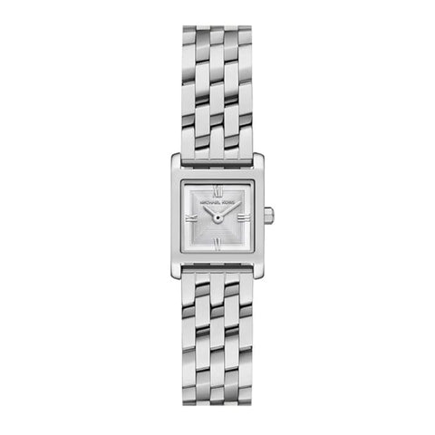 Modern sophistication meets vintage-inspired design in this striking petite square timepiece. Featuring a stainless steel case and an eye-catching slanted multi-link bracelet, it delivers a bold yet refined statement. The textured tonal dial adds depth and elegance, perfectly complementing the sleek silver-tone finish. With its clean lines and architectural details, this watch is a versatile accessory that elevates both everyday and dressed-up looks with effortless style.
