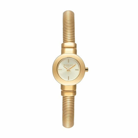 Elevate your accessory game with this refined 21 mm gold‑tone timepiece from the Gramercy collection by Michael Kors — a model that merges minimalist elegance with subtle texture and timeless appeal. The round dial, finished in matching gold, hosts slender baton indices and two‑hand quartz movement, capturing the essence of understated luxury Thoughtfully crafted for everyday elegance, it’s powered by a reliable quartz movement, covered under a 2‑year warranty, and offers splash resistance to 3 ATM — ideal for your daily routine, less so for swimming.
