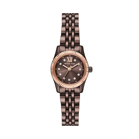 the Michael Kors Lexington women's watch is the epitome of modern elegance. Featuring a warm chocolate sunray dial encased in a 26mm round case, this timepiece offers a unique twist on a classic silhouette. Its matching chocolate-tone stainless steel bracelet adds a bold, monochromatic statement, while the three-hand quartz movement ensures accurate timekeeping. Finished with a mineral glass crystal and an easy-to-use crown for time adjustment, this watch seamlessly blends fashion and function. Perfect for day-to-night wear, it’s a luxurious accessory that stands out with effortless sophistication.