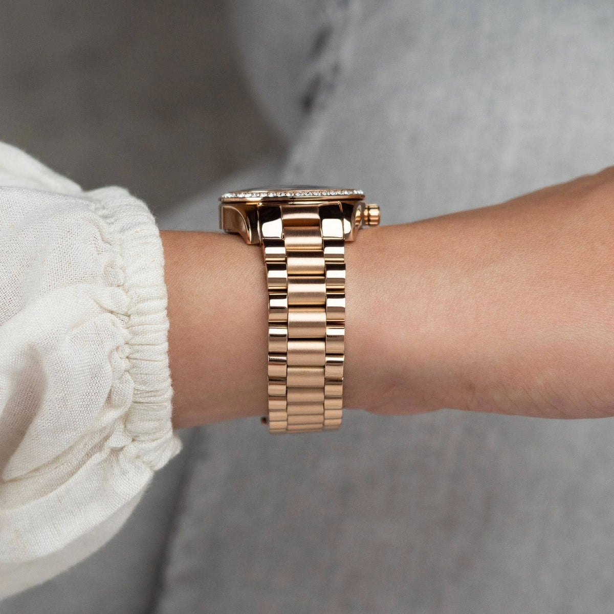 The Michael Kors Lexington Lux watch offers a fresh twist on a classic favorite, blending timeless style with modern sophistication. Its elegantly scaled-down 33mm case ensures a sleek, tailored fit, while the signature three-link bracelet and crystal-embellished topring add a subtle touch of sparkle. The rich navy dial contrasts beautifully with the warm rose gold-tone stainless steel finish, creating a look that’s both polished and versatile. Whether worn at the office or out for the evening, this timepiece brings effortless elegance to every moment.