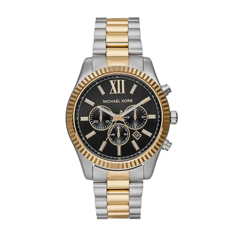 Crafted for the modern, aspirational man, the Michael Kors Lexington watch combines elegance with precision. Its beveled gold-tone stainless steel bezel and two-tone bracelet add a refined, textured appeal, while the chronograph sub-dials and date function enhance both functionality and style. Sleek, sophisticated, and versatile, this timepiece is designed to make a lasting impression for any occasion.
