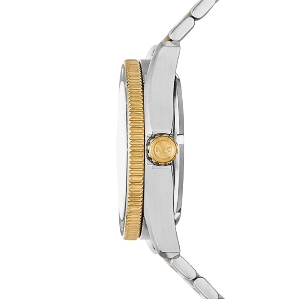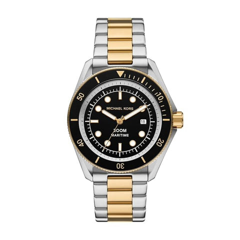 Elevate your style with the sophisticated charm of the Michael Kors Maritime 42mm men's watch. Designed for the modern man, this timepiece showcases a striking black glossy dial paired with a sleek two-tone stainless steel bracelet. The round dial, encased in durable mineral glass, ensures both elegance and resilience. Powered by precise three-hand movement, it offers seamless timekeeping, while the side crown allows effortless time adjustment. Perfect for any occasion, this Michael Kors watch is a statement of confidence, refinement, and timeless appeal.