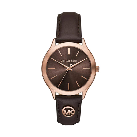The Michael Kors Slim Runway MK7546 blends understated sophistication with modern minimalism. Encased in a polished 38 mm stainless steel frame and paired with a rich brown leather strap, this watch effortlessly transitions from casual days to formal evenings. Powered by a reliable quartz three-hand movement and boasting 5 ATM water resistance, it’s designed to keep pace with your busy lifestyle while maintaining timeless style.