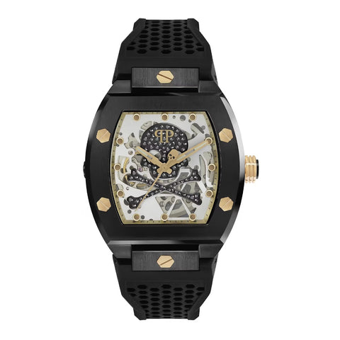 This timepiece redefines luxury with its daring open-dial construction, showcasing the mechanical heartbeat beneath. Inspired by the legendary Skullbone, the design places this symbol of strength prominently at 6 o'clock, while the PHILIPP PLEIN signature crowns the dial at 12. Every angle reflects exquisite craftsmanship — from the finely engineered skeleton movement to the bold architectural case design. The Skeleton Edition isn't just a watch; it's a fearless expression of identity, crafted for those who wear power on their wrist.