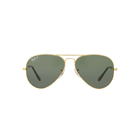 Step out in confidence with these classic full-rim aviator sunglasses from Ray-Ban, featuring a sleek gold metal frame paired with iconic green polarized lenses. Designed for both style and protection, the polarized lenses reduce glare and enhance visual clarity—perfect for sunny days on the move.Packaged with a soft pouch for safe storage, these sunglasses are as practical as they are stylish. Whether you're heading out for a casual stroll or weekend getaway, they add an effortless edge to any outfit.