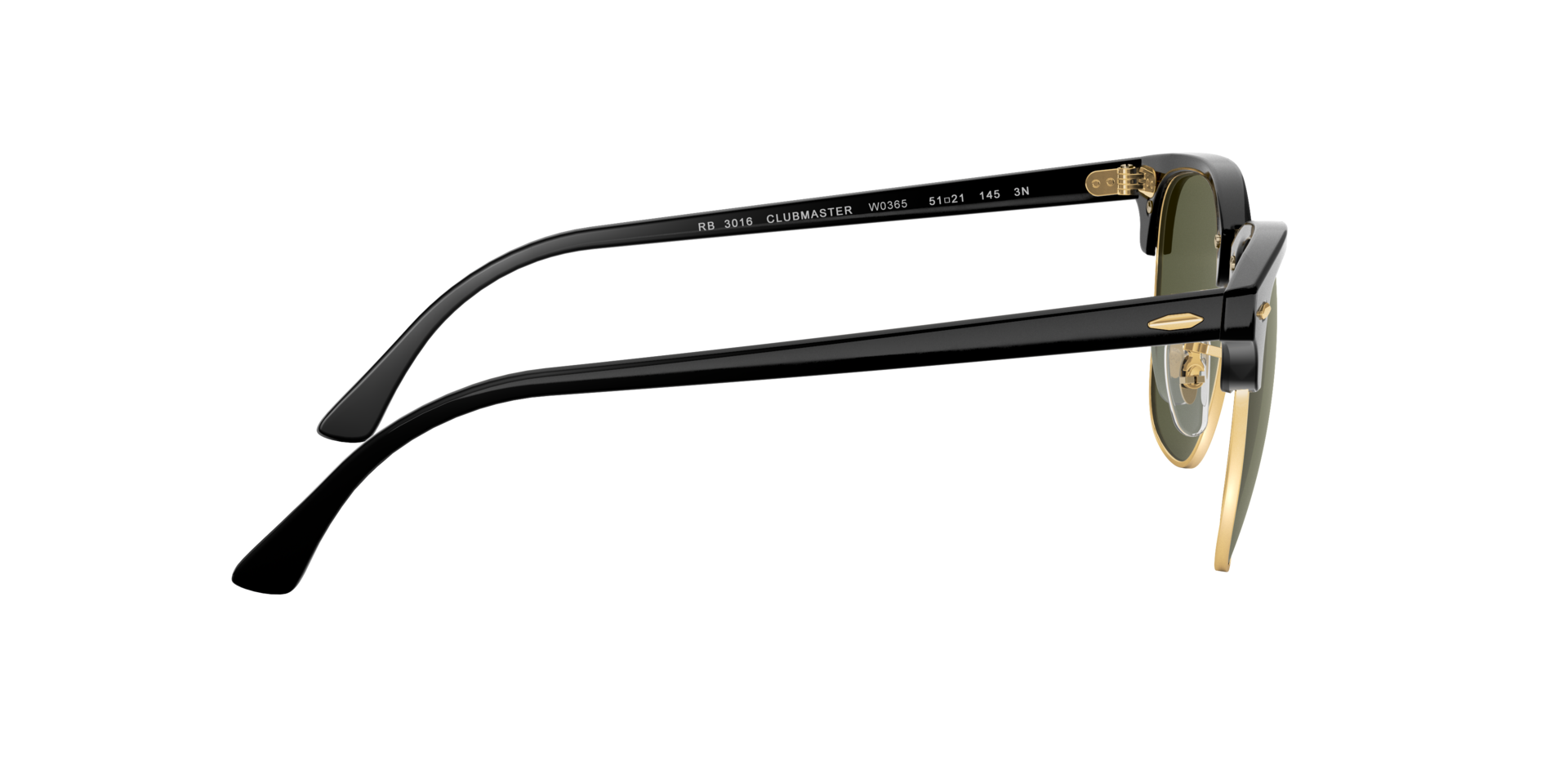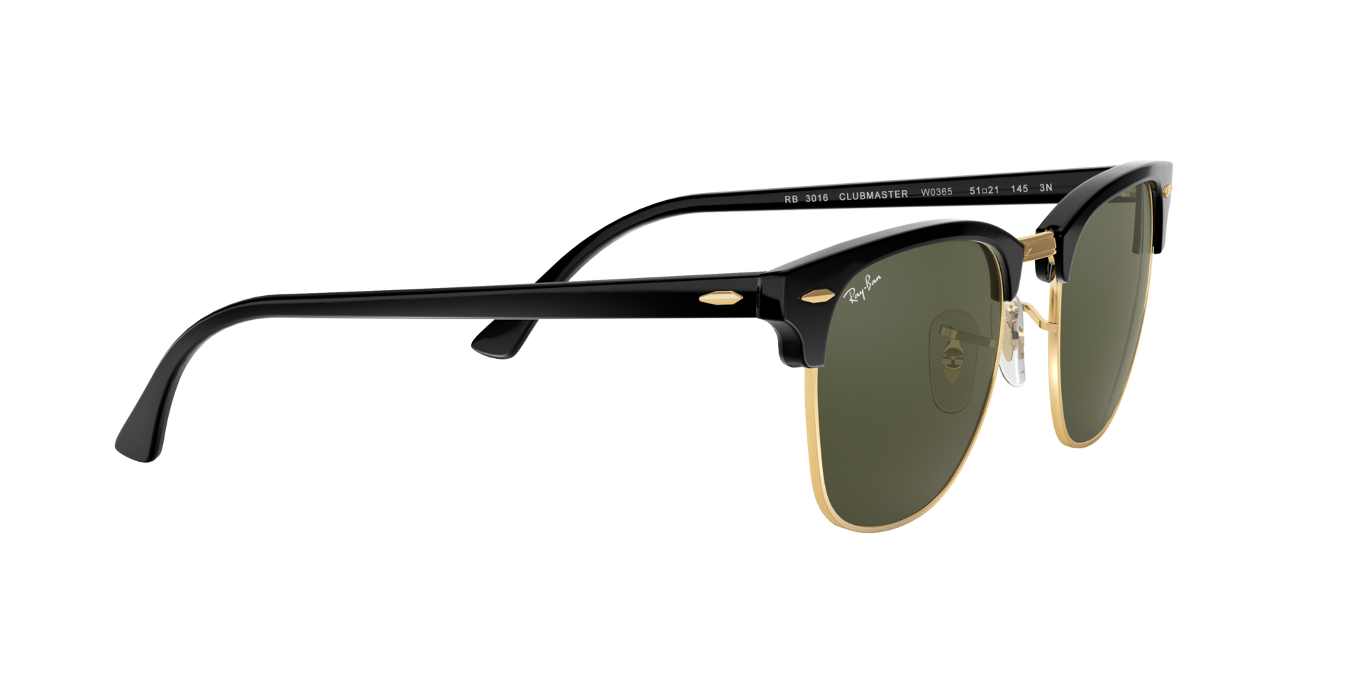 Ray-Ban Clubmaster Classic RB3016 W0365 – Black & Gold Frame, Green G-15 Lens, 51mm