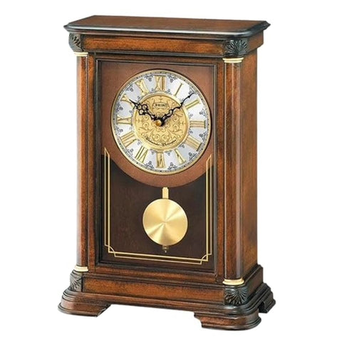 Seiko Table Clock Elegant Rectangular Wooden Dual Chime Sound Pendulum QXQ008BN