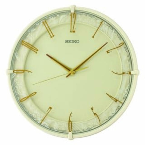 Seiko Wall Clock Beautiful Round Plastic Cream Color Case Analog QXA811CT