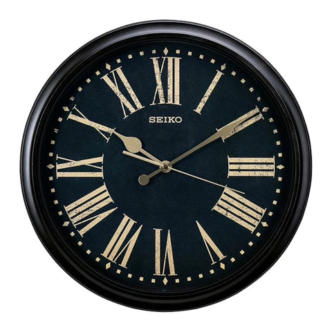 Seiko Wall Clock Classic Elegant Round Black Plastic Home Decor Roman Figure QXA771KN