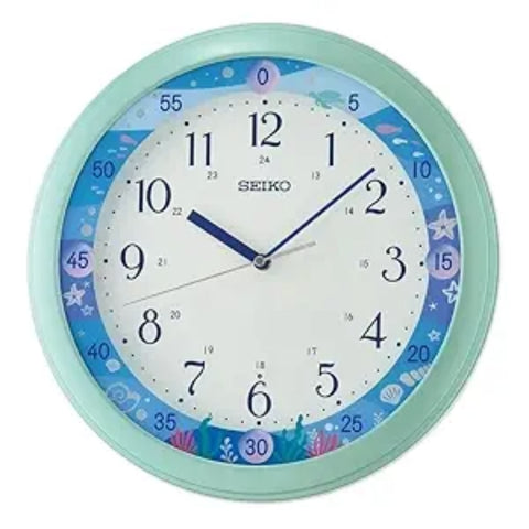 Seiko Wall Clock Elegant Round Blue Plastic Case Auto Constant Light QHA010MN