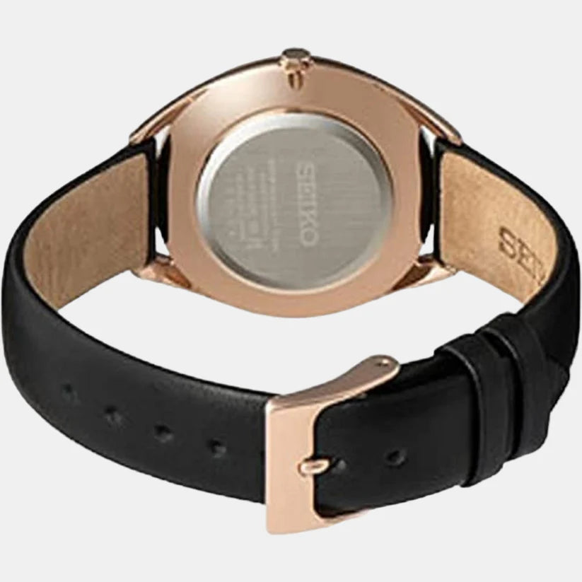 Chic, refined, and effortlessly elegant — the Seiko SWR068P1 is a true reflection of modern femininity. Showcasing a striking blue dial set within a sleek stainless steel case, this timepiece adds a sophisticated pop of color to your ensemble. The genuine leather strap offers timeless charm and all-day comfort, making it a perfect blend of style and substance. Powered by reliable quartz movement, it features a convenient date display and is water-resistant up to 50 meters, ideal for daily wear and on-the-go lifestyles. Whether you're at work, out with friends, or enjoying a weekend getaway, this Seiko watch brings understated luxury to every moment.