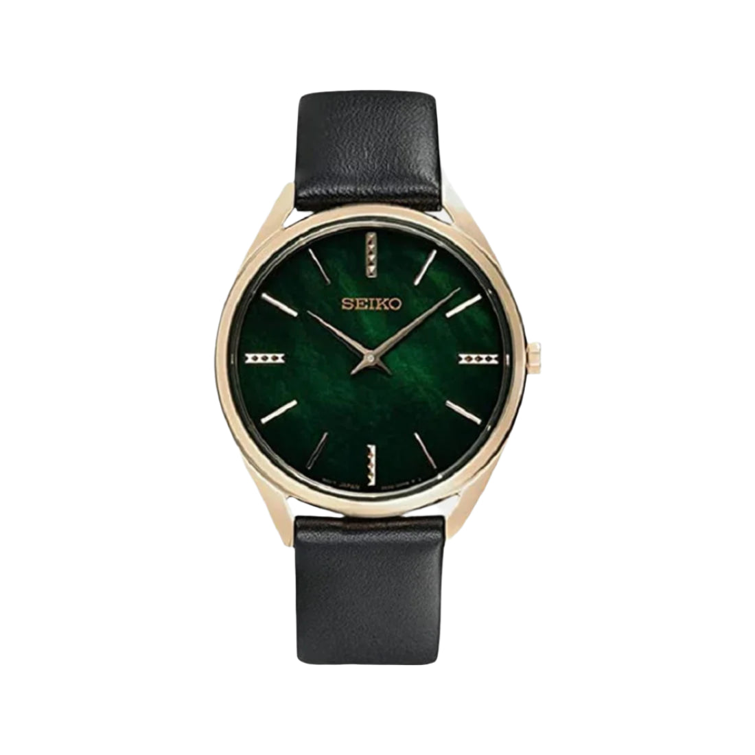 Seiko Women Quartz Green Dial Analog Leather Strep Watch SWR068P1
