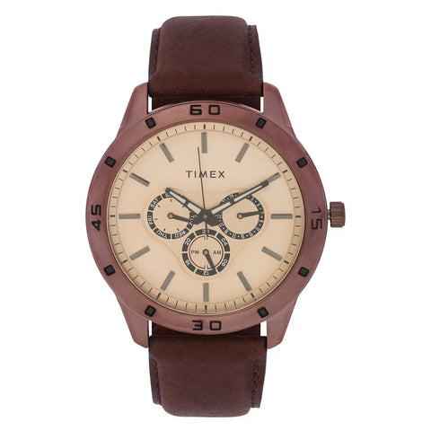 Timex Analog Brown Dial Men's Leather Watch -TW000U915