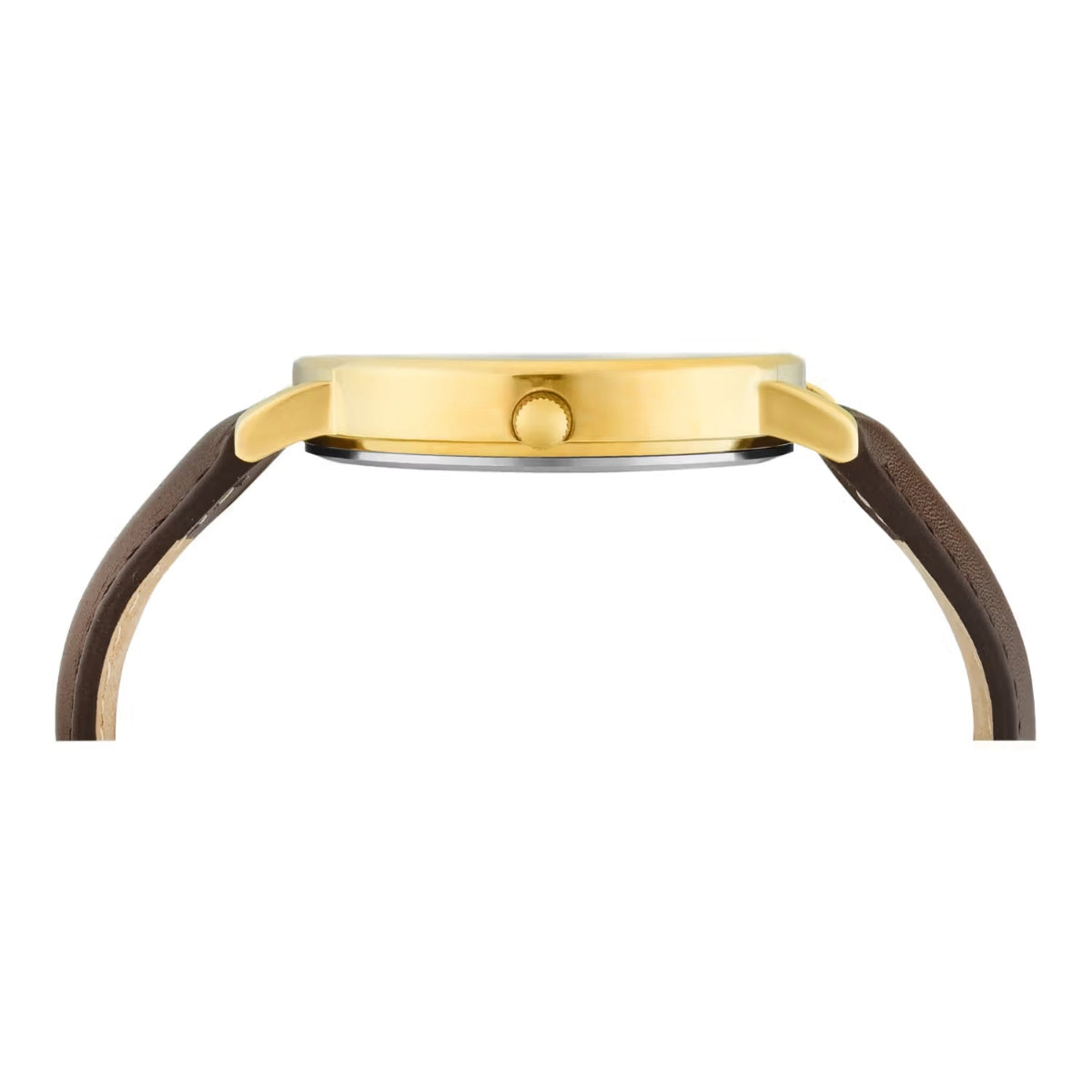 Elevate your wristwear with the refined elegance of the TIMEX Men’s Analog Watch. Featuring a warm 42mm champagne-toned dial and a rich brown leather strap, this timepiece strikes the perfect balance between vintage charm and modern simplicity. Crafted with a sturdy brass case and powered by dependable quartz movement, it ensures accurate timekeeping with minimal maintenance. Its 30-meter water resistance makes it well-suited for everyday wear, easily withstanding splashes and light rain. Designed for versatility, this watch seamlessly transitions from office meetings to weekend outings, offering a timeless look that complements both formal and casual attire. With its clean analog display and understated sophistication, it's a must-have for men who value both style and substance.