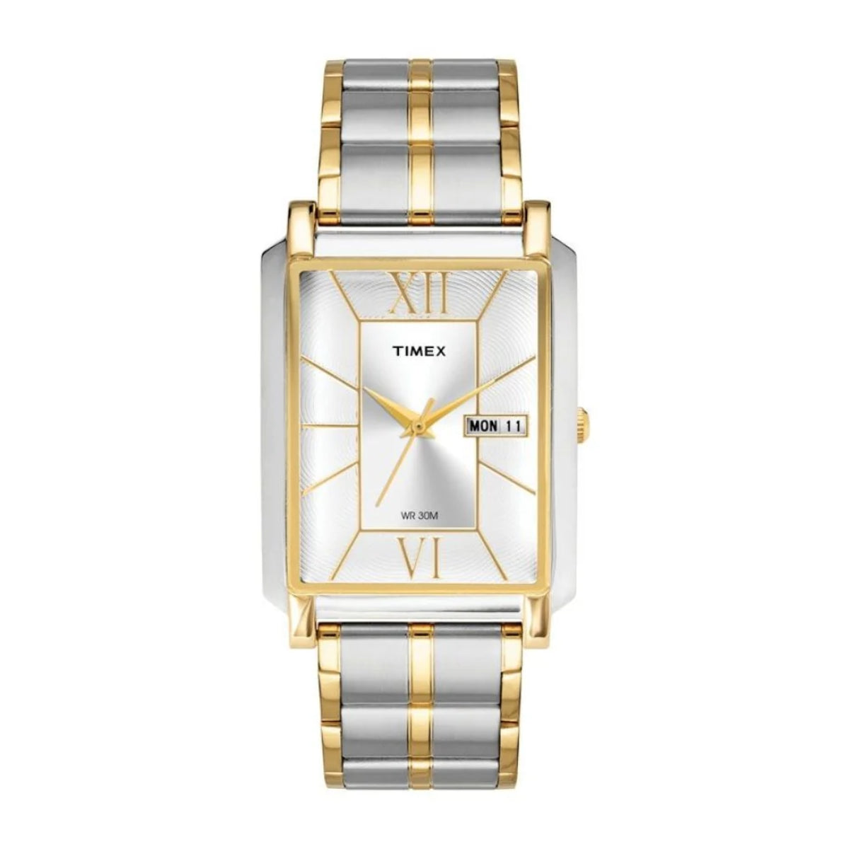 Timex Classics Men's Silver Rectangle Dial Day Date Function Watch -TW000W908