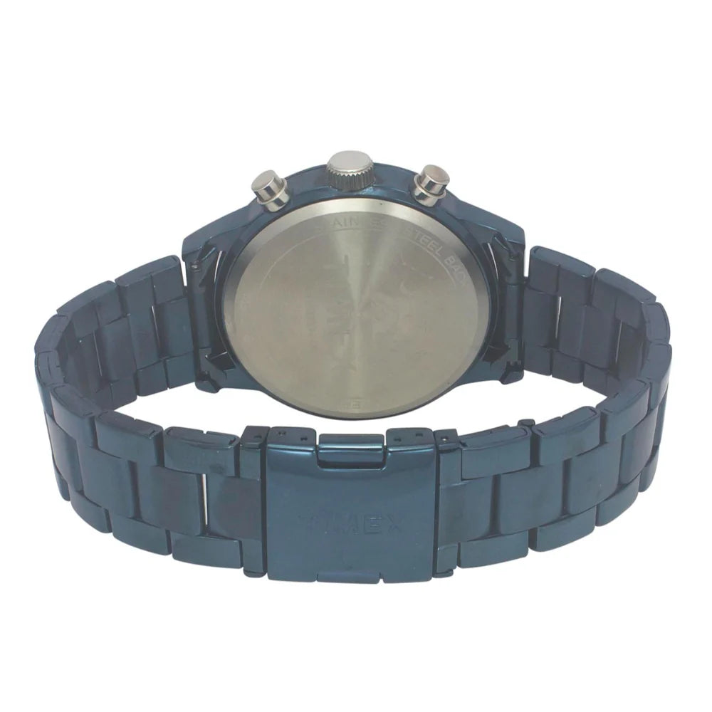 The Timex Cosmic Awe Men's Chronograph Round Dial Blue Watch is the perfect blend of functionality and style. Designed with a vibrant blue dial, this watch features a durable blue stainless steel band and a reliable chronograph function. Whether you're dressing for a special event or everyday wear, its sleek design makes it the perfect accessory. Additionally, this watch offers 30 meters of water resistance, ensuring it stands up to everyday splashes, and it runs on an efficient quartz movement, ensuring precise timekeeping.