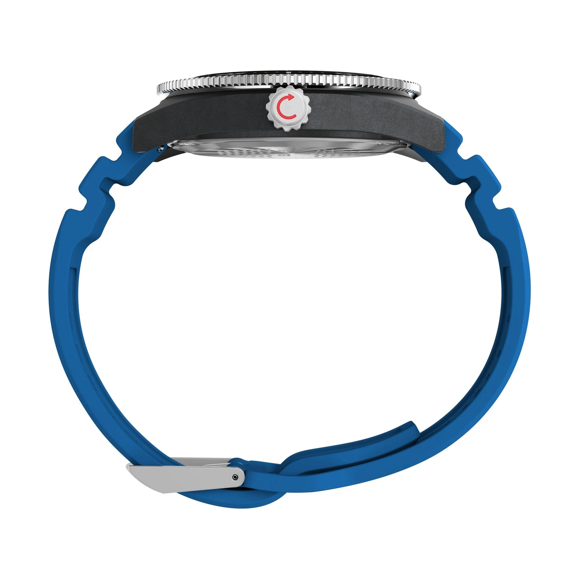 The Deepwater Reef 200 XCF is the ultimate blend of durability, precision, and style, designed for those who push the limits beneath the surface. With its robust 43mm case crafted from a lightweight yet incredibly tough polycarbonate-carbon fiber mix (XCF), this watch offers the perfect balance of strength and comfort. Powered by a reliable quartz movement, it’s equipped with a sapphire crystal that features an anti-reflective coating for clarity under any light. The unidirectional ratcheting stainless-steel top ring ensures safe timing during underwater activities, while the Super-Luminova® hands and hour markers guarantee readability in the darkest depths. The unique wave pattern on the black dial adds dimension and character, complementing the bold, debossed bright blue synthetic rubber strap. Designed for performance, it boasts 200m water resistance with a screw-down crown, making it a true companion for those seeking adventure beyond the edge.