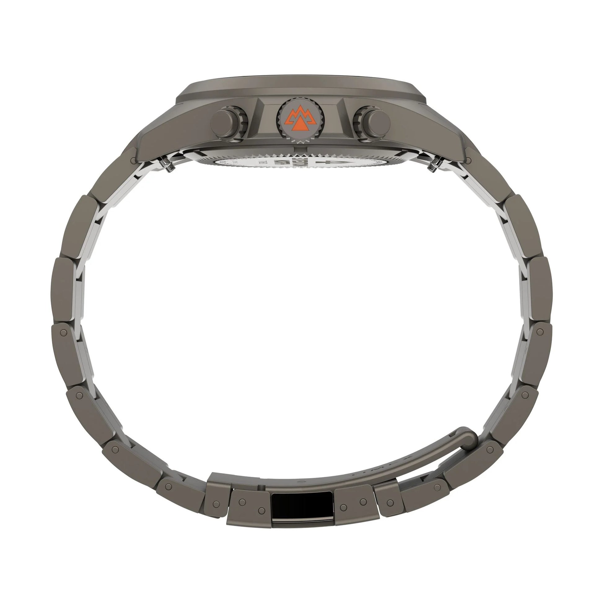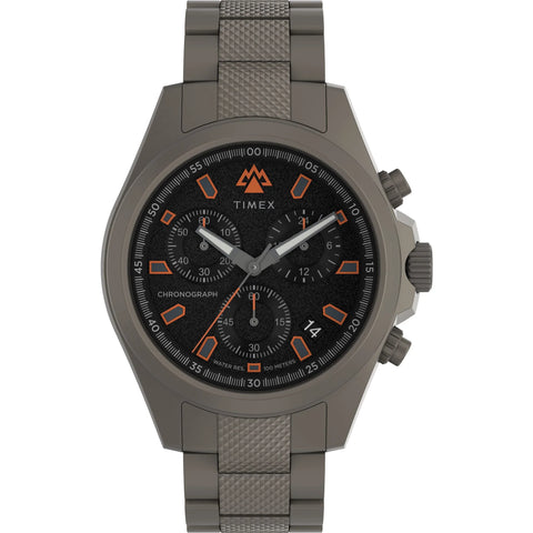 The Expedition Field Chronograph combines rugged durability with timeless style, bringing the first chronograph collection to the Expedition line. Designed to withstand the elements, this watch features a 43mm stainless steel case with gunmetal PVD for a sleek yet tough look. A screw-down crown and case back ensure 100m of water resistance, while the anti-reflective sapphire crystal offers optimal clarity in all lighting conditions. The luminous hands and hour markers provide excellent visibility, even in the darkest environments. Equipped with a stainless-steel bracelet, this field watch is built for both adventure and everyday wear, keeping you ready for whatever the wilderness throws your way.