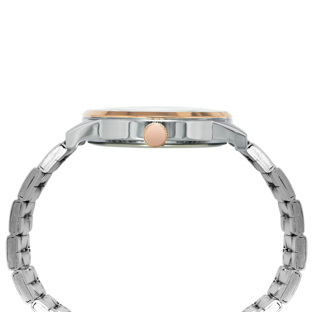 This bold two-tone men's multifunction watch combines sophisticated design with practical functionality. Featuring a stamped, textured black dial, it offers a unique and refined look that stands out. The domed crystal adds a touch of elegance, enhancing its visual appeal while offering durability. The two-tone metal design creates a striking contrast, giving the watch a modern yet timeless feel. With multifunctional capabilities, this timepiece is not only a stylish accessory but also a versatile tool for everyday wear. Perfect for those who value both style and performance, it is an ideal addition to any wardrobe.