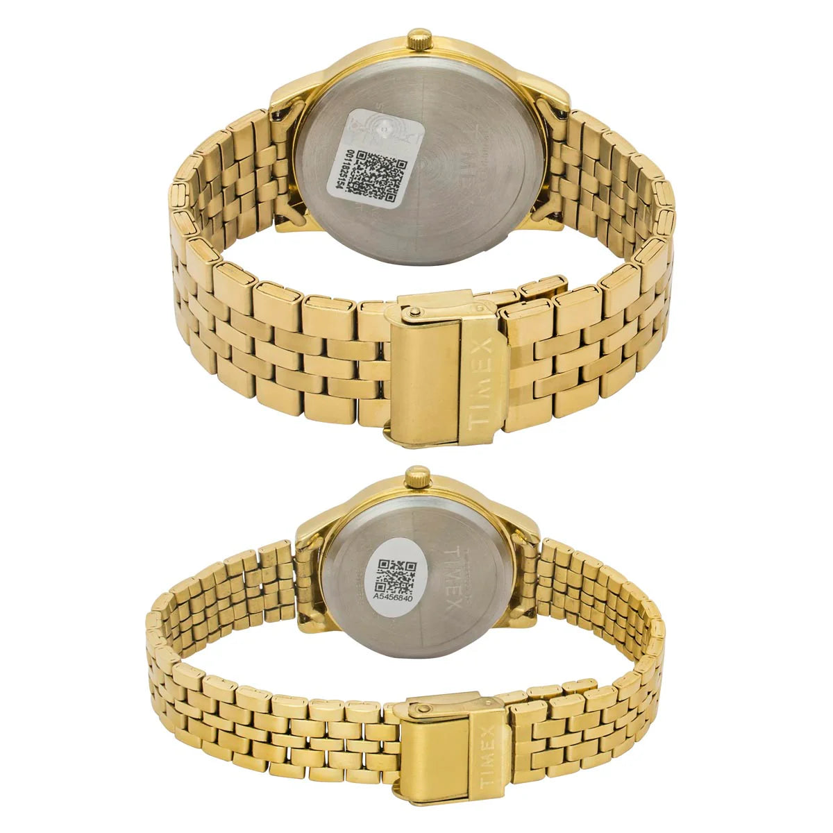 Discover the perfect blend of timeless craftsmanship and modern design with the Timex Pair Analog Watch. Featuring a striking 43.00 x 32.00 mm green dial paired with a sleek gold stainless steel strap, this watch set brings together vintage charm and contemporary sophistication in one elegant package. Crafted with a durable brass case, these watches are built to withstand everyday wear, while their 30-meter water resistance protects against splashes and unexpected weather conditions. Powered by precise quartz movement, they ensure reliable timekeeping whether you’re at work, on a casual outing, or attending a special event. Ideal for couples who appreciate minimalist style with classic appeal, this pair is versatile enough for office hours, travel adventures, or daily commutes. Beyond its refined look, it’s also a thoughtful gift option, combining elegance with practicality.