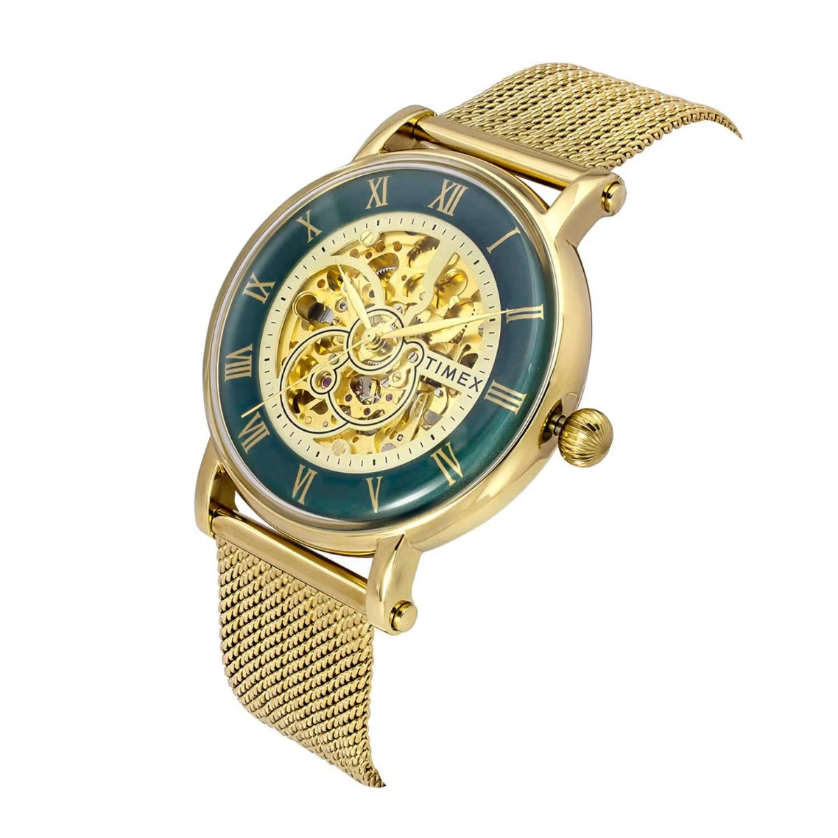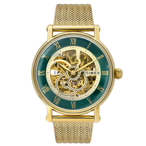 Step into a world where classic craftsmanship meets contemporary design with the TIMEX Men’s Automatic Watch. Featuring a striking 44mm green dial paired with a sophisticated gold stainless steel case and bracelet, this watch effortlessly balances vintage allure with modern flair. Built to withstand everyday adventures, its robust stainless steel construction ensures lasting durability, while 50-meter water resistance protects against splashes and weather surprises. Powered by a dependable automatic movement, this timepiece delivers precise, self-winding performance—making it the perfect companion for both casual outings and formal occasions.