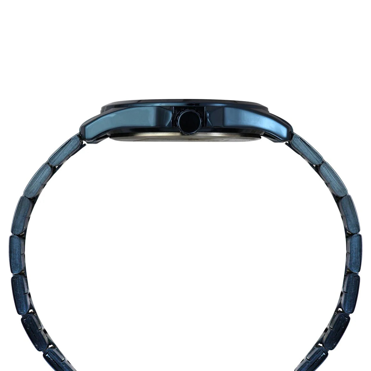 Capture attention and admiration with this striking men's analog watch by Timex. Featuring a captivating blue round dial, this timepiece is protected by durable mineral glass and powered by precise quartz movement. The simple yet elegant three-hand display ensures effortless timekeeping, while the stainless steel strap in a matching blue hue adds a touch of refinement. Finished with a secure push-button clasp, this watch not only enhances your look but also offers a comfortable and reliable fit for any occasion.