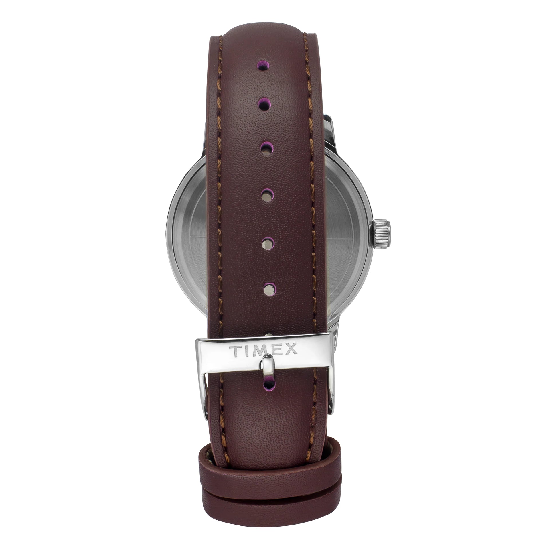 Enhance your wristwear collection with this stylish men's analog watch by Timex. Designed to keep you punctual while adding a sophisticated touch, the watch features a striking blue round dial encased in a durable 41 mm brass case, safeguarded by mineral glass. The dial is elegantly complemented by three plain hands for a clean and timeless look. The rich brown leather strap adds a refined flair to the overall design, while the buckle clasp ensures a secure and comfortable fit throughout the day. A perfect blend of style and functionality, this watch is a must-have accessory for any modern man.