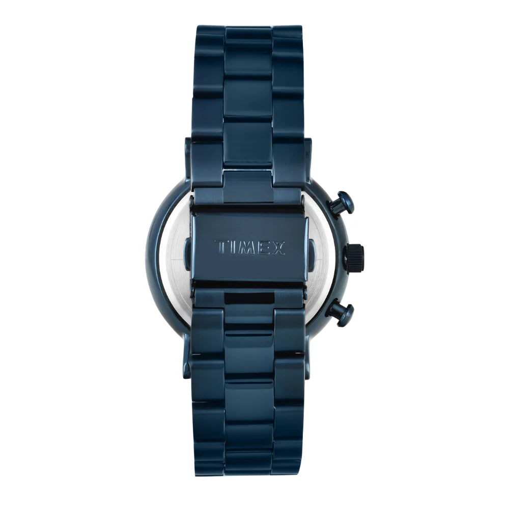 A timeless accessory for discerning watch enthusiasts, this Men's Analog watch from Timex is an essential addition to any collection. Featuring a sleek Stainless Steel strap in a striking Blue tone, it adds a refined touch to your wrist. The eye-catching Blue Round dial, shielded by durable Mineral Glass, exudes sophistication. Equipped with a functional Chronograph, it offers precision and style. The watch is finished with a Fold-Over Clasp with Safety clasp, ensuring both comfort and security for a perfect fit. Ideal for those who appreciate both form and function.