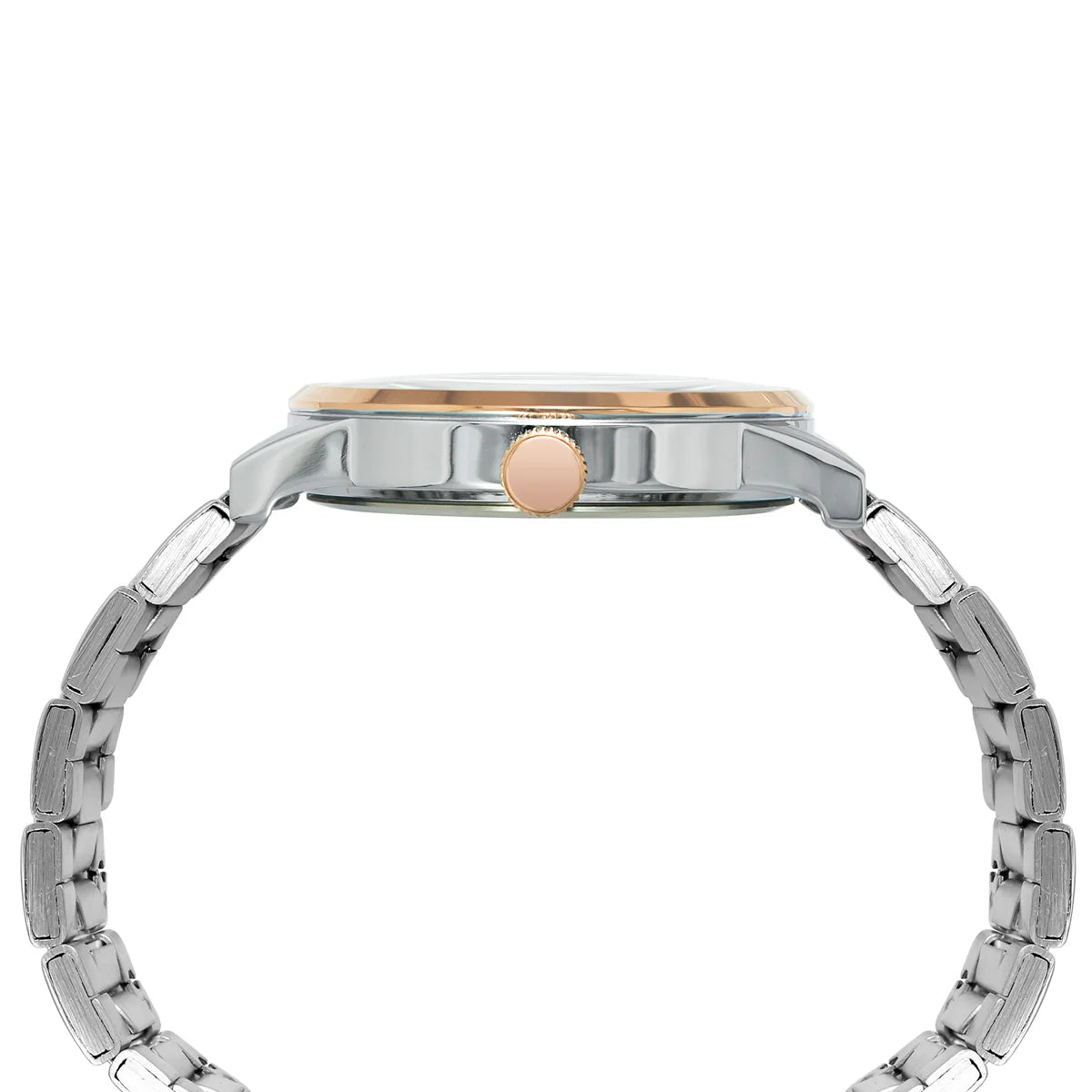 Keep time in style with this sleek Timex watch, designed to complement your everyday look. Featuring a classic round-shaped white dial encased in a 44 mm diameter, it offers both functionality and fashion. The secure buckle clasp ensures a comfortable fit, while the reliable Quartz movement and smart watch functionality keep you on track and on trend.