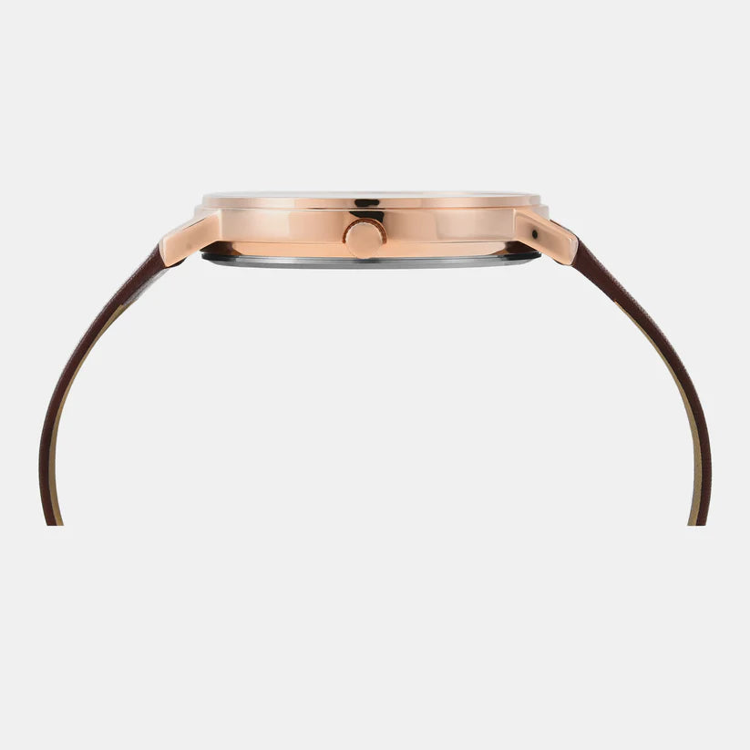 Make a striking impression with this men's analog stainless steel watch. Featuring a 41mm round case and a sophisticated silver dial, it combines classic style with reliable quartz movement for precise timekeeping. The 19mm brown leather strap enhances its elegance and fastens securely with a tang buckle. With 3 ATM water resistance, this watch is ideal for everyday wear. Weighing just 40 grams and boasting a sleek 8mm case thickness, it offers both comfort and style. Backed by a 2-year warranty, this watch is crafted in India for quality and durability.