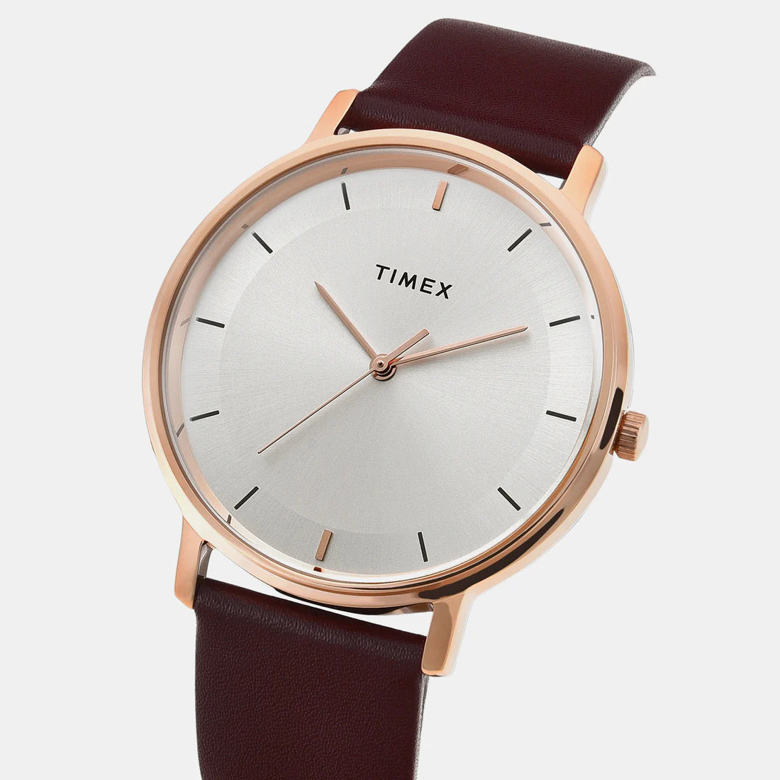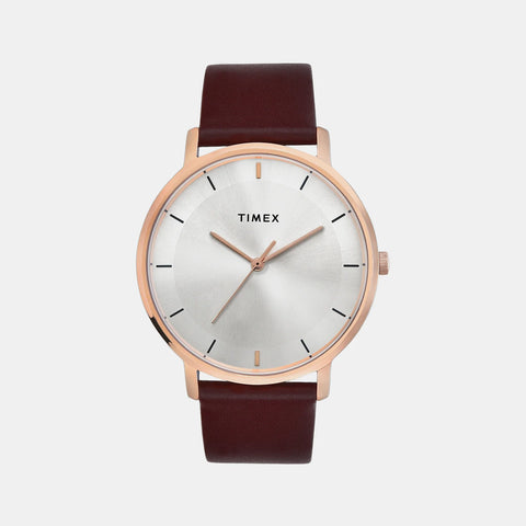 Timex Men's Silver Dial Analog Leather Strap Watch TW0TG8014