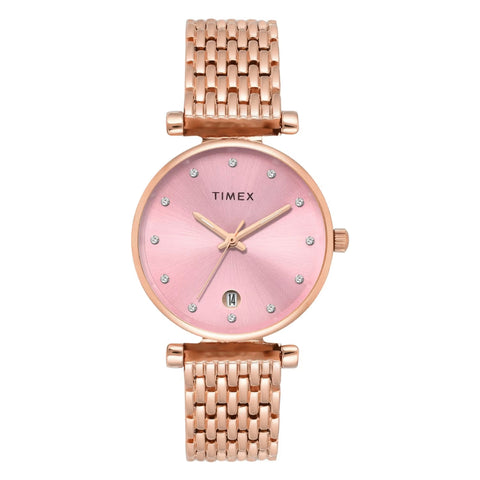 Timex Pink Round Dial Analog Stainless Steel Women Watch TWEL21601