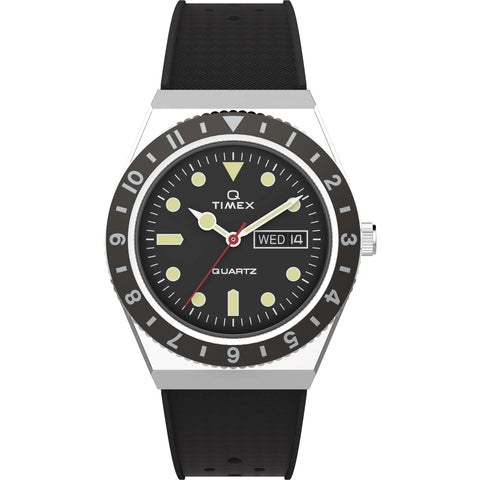 Originally launched in the 1970s, the Q Timex revolutionized the watch world by introducing quartz technology to a new generation. Now, the Q Timex 1978 Reissue takes the beloved original and enhances it with modern updates, while staying true to its iconic design. Featuring a rotating bezel and a domed acrylic crystal, this timepiece maintains the core elements that made the Q Timex a classic. The new bold addition is a durable black synthetic rubber strap that pairs seamlessly with the dial, offering a fresh, stylish twist. It's the perfect balance of nostalgia and innovation—everything you loved about the original, with even more to appreciate.