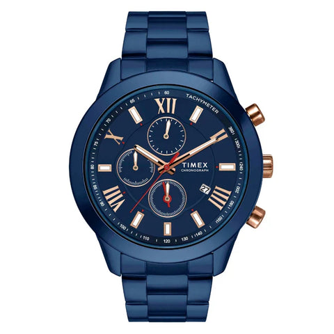 Timex Quartz Blue Round Dial Analog Stainless Steel Men Watch TW0TG7626