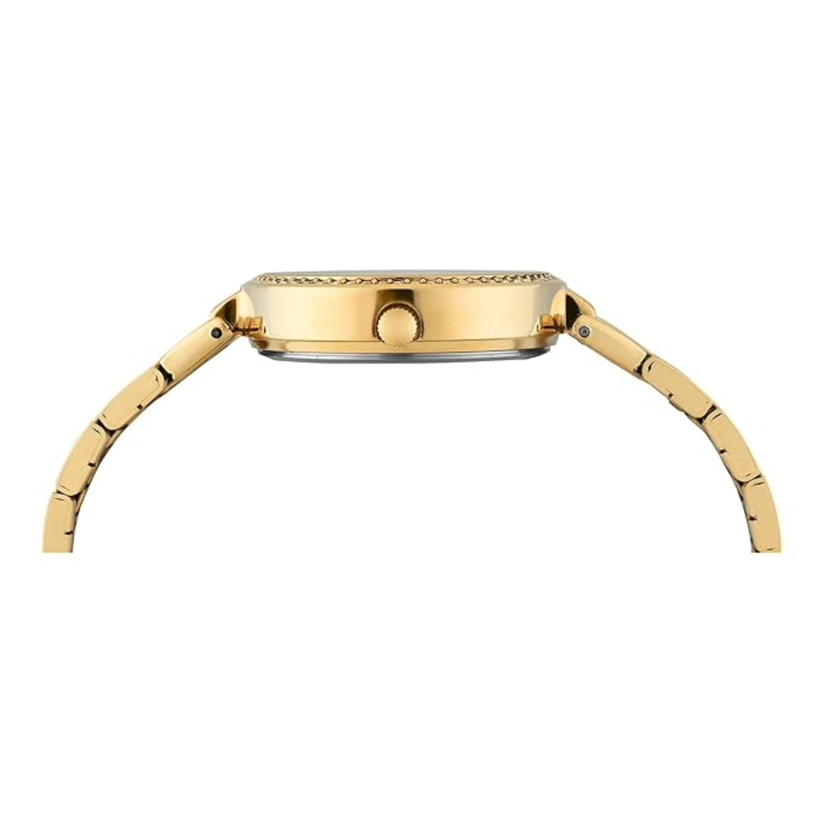 Discover the perfect blend of style and function with this Timex Women’s Analog Watch. Featuring a striking 35mm green dial housed in a durable brass case, this timepiece offers both modern sophistication and timeless charm. The gold-tone stainless steel band adds a luxurious touch, making it ideal for any occasion—from casual outings to formal events. Powered by reliable quartz movement and equipped with 30 meters of water resistance, it’s designed to withstand daily splashes and unexpected weather, ensuring you stay punctual and stylish wherever you go.