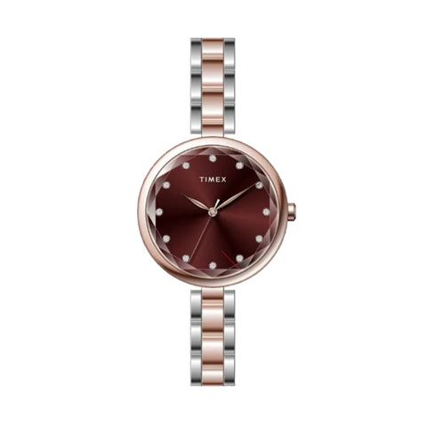 Timex Quartz Maroon Dial Analog Stainless Steel Women Watch TWEL21702