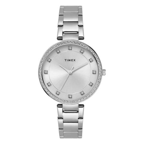 Timex Quartz Silver Round Dial Analog Women's Watch TWEL18730