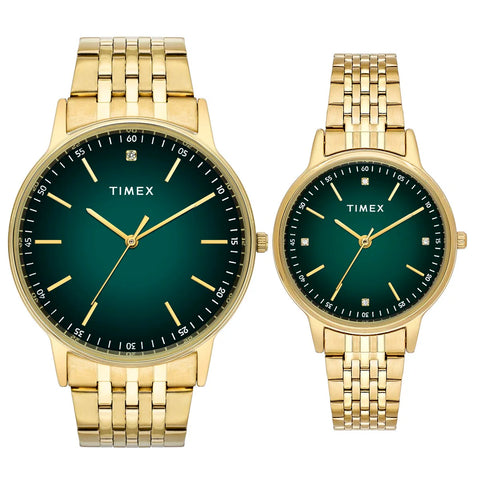 Timex Green Round Dial Analog Stainless Steel Pair's Watch - TW00PR327