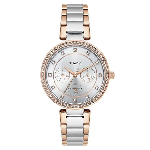 Timex Silver Round Dial Analog Women's Watch - TWEL18723