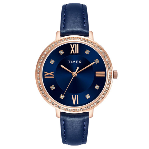 Timex Women Embellished Dial Leather Straps Analog Watch TWEL14712