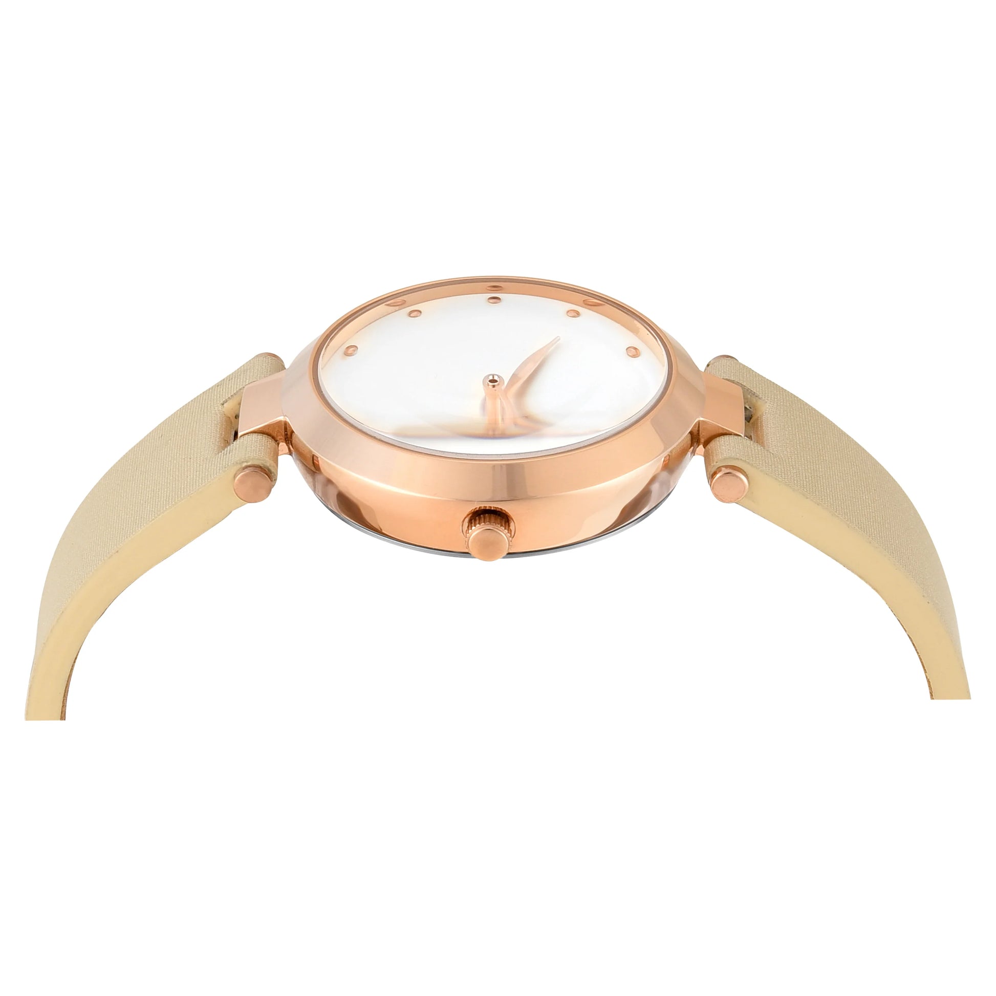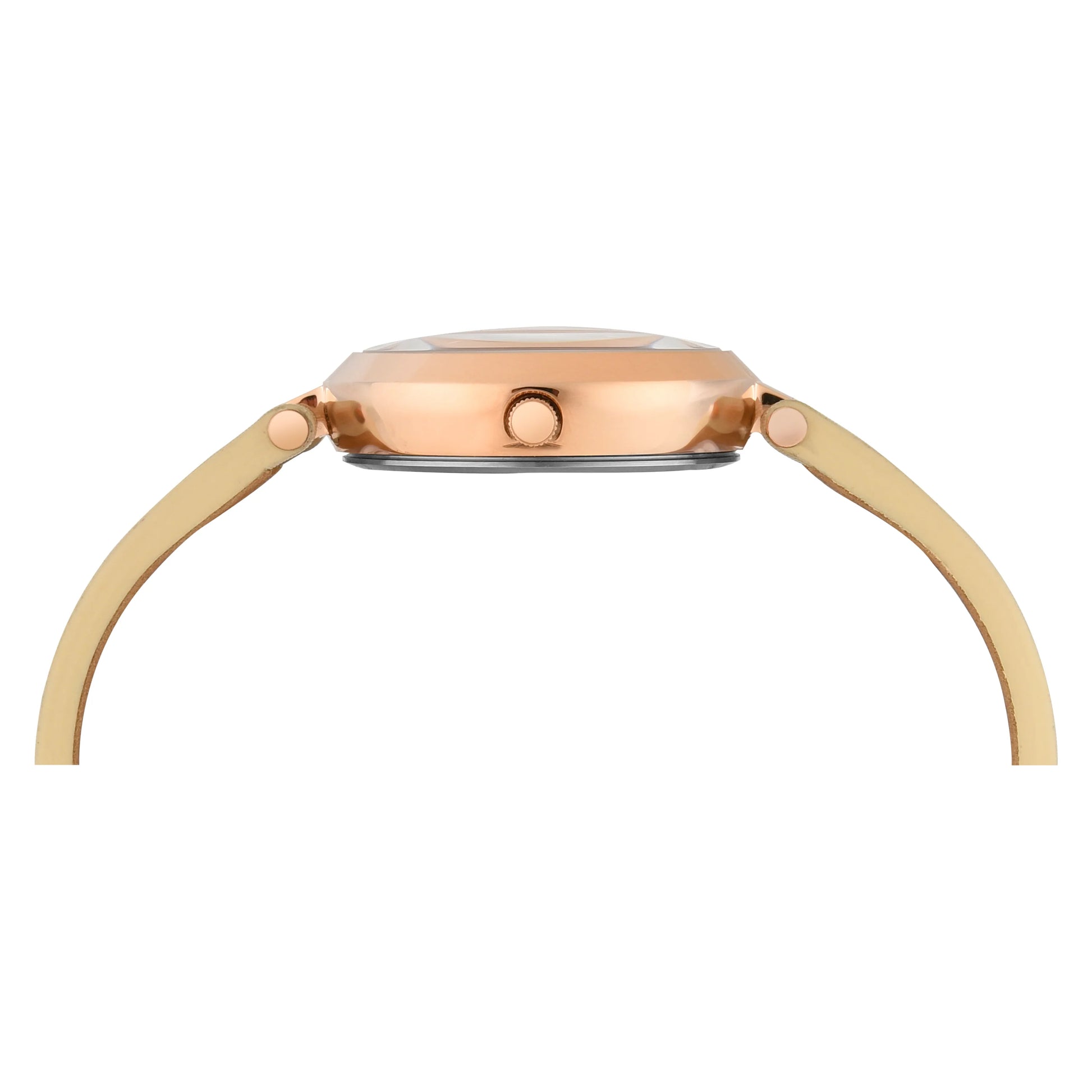 Elevate your style with the timeless elegance of this women's analog watch by Timex. Featuring a refined ivory round dial, protected by a durable mineral glass, this watch is powered by reliable quartz movement. The dial sits elegantly within a 32.6 mm case, complemented by sleek, plain two hands for easy time reading. The beige leather strap adds a soft yet sophisticated touch, enhancing the overall appeal of the watch. Finished with a secure buckle clasp, this piece is designed to keep you looking chic while ensuring comfort and durability.