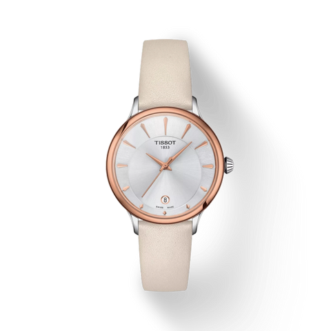 Elevate your style with this elegant women’s watch from the Tissot T-Lady collection, complete with an additional interchangeable strap for versatile looks. Driven by a precise quartz movement with an EOL indicator, it offers reliable performance day after day. The 33.17 mm round case houses a clear, easy-to-read dial protected by a domed, scratch-resistant sapphire crystal with anti-reflective coating. Featuring sleek three-hand timekeeping and a convenient crown, this watch combines functionality with refined design. The carefully crafted leather strap adds a touch of sophistication, making it a perfect accessory for any occasion.