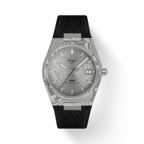 Experience a classic reimagined with modern innovation: the PRX Powermatic 80 in marbled Damascus stainless steel. Sleek and slim, it channels the authentic spirit of the ’70s while offering contemporary performance. Crafted for design enthusiasts, this timepiece combines a vintage-inspired Tissot case from 1978 with cutting-edge features that meet the demands of today. At its heart lies the self-winding Powermatic 80 movement, equipped with the advanced Nivachron hairspring for exceptional accuracy and reliability. Boasting an impressive 80-hour power reserve, it effortlessly keeps up with your busy lifestyle. The unique Damascus steel gives the case and dial a stunning marbled texture, making every watch distinct. Finished with an interchangeable leather strap, it offers versatility and style that’s as dynamic as you are.