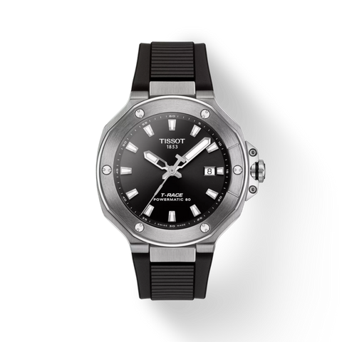 Motorbikes represent far more than simple transport—they embody a way of life. The T-Race collection captures that spirit, giving riders a bold way to showcase their identity and devotion to the open road. Its transparent caseback reveals the powerful rhythm of Swiss craftsmanship, driven by the Powermatic 80 movement equipped with a Nivachron balance spring for exceptional precision and durability. Design elements echo the mechanics of a motorcycle: the bezel draws inspiration from a brake disc, while the crown protector mirrors the form of a caliper. The T-Race Automatic brings together innovation and motorsport heritage, creating a timepiece that celebrates the thrill and freedom of every ride.