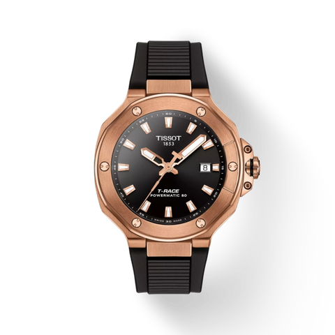 Motorbikes aren’t just a way to get from one place to another—they represent freedom, identity, and passion. The T-Race collection embodies that spirit, giving riders a bold symbol of their connection to the world of motorsports. Its transparent caseback reveals the dynamic precision of the Powermatic 80 movement, enhanced by a Nivachron balance spring for reliability on and off the road. Every detail draws inspiration from motorcycle engineering: the bezel mirrors a brake disc, while the crown protector echoes the form of a caliper. The T-Race Automatic blends innovation with adrenaline-fueled design, creating a timepiece built for those who live the ride as much as they love it.