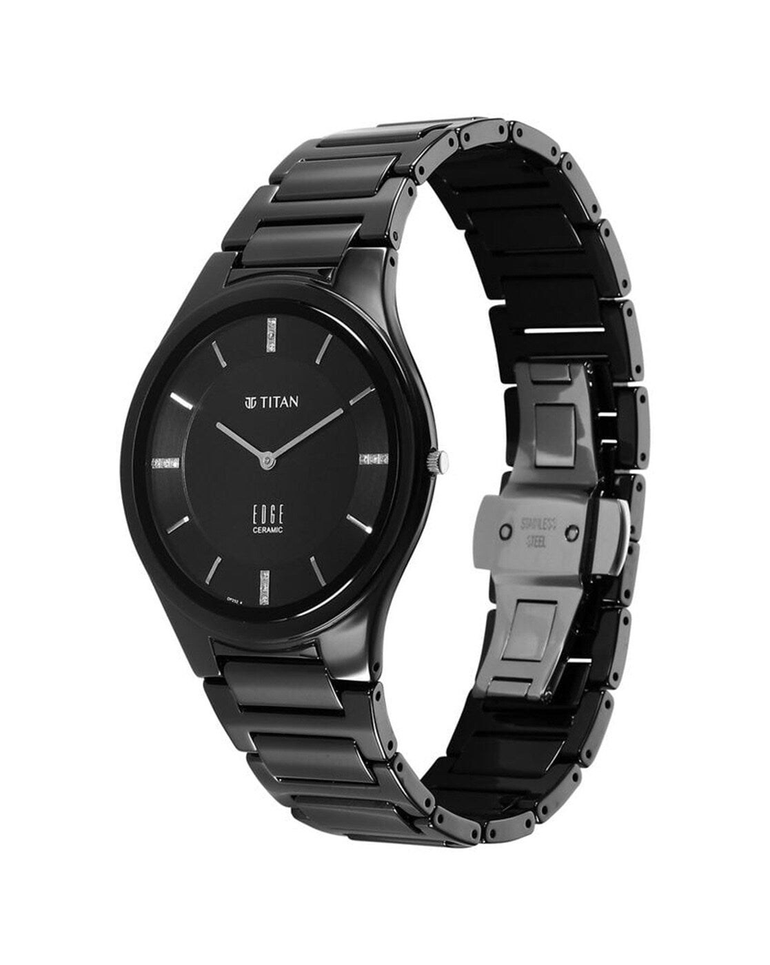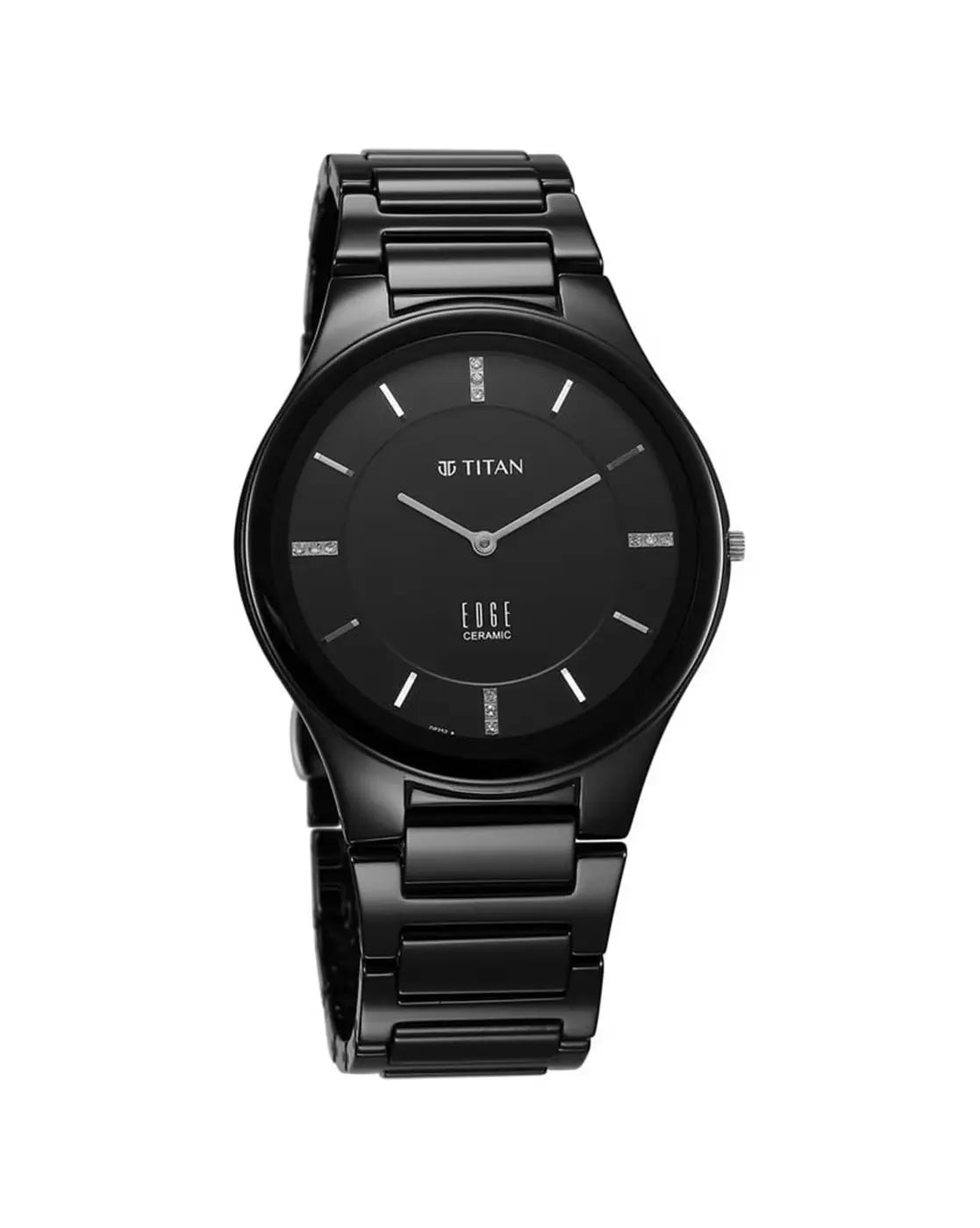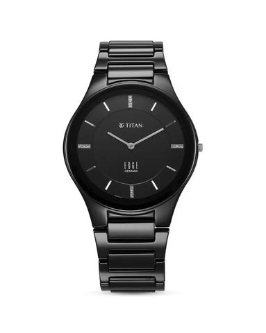 Titan Edge Ceramic Quartz in Glossy Black with Diamonds and Black Dial Men Watch 1696NC12